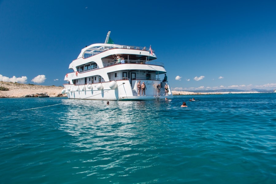 Kreuzfahrt mit Motorschiffen entlang der herrlichen Küste und Inseln Dalmatiens auf der Strecke: SPLIT – ROGOZNICA / Primosten – ŠIBENIK / KRKA WASSERFÄLLE (Skradin oder Zlarin) – KORNATEN / Sall – ZADAR – VODICE – TROGIR – SPLIT